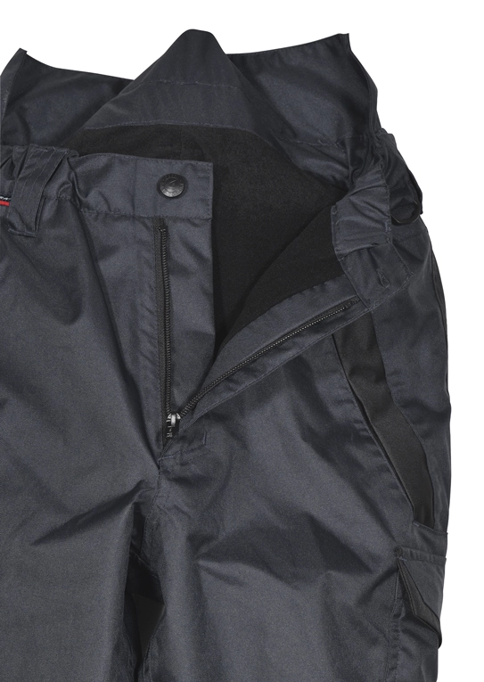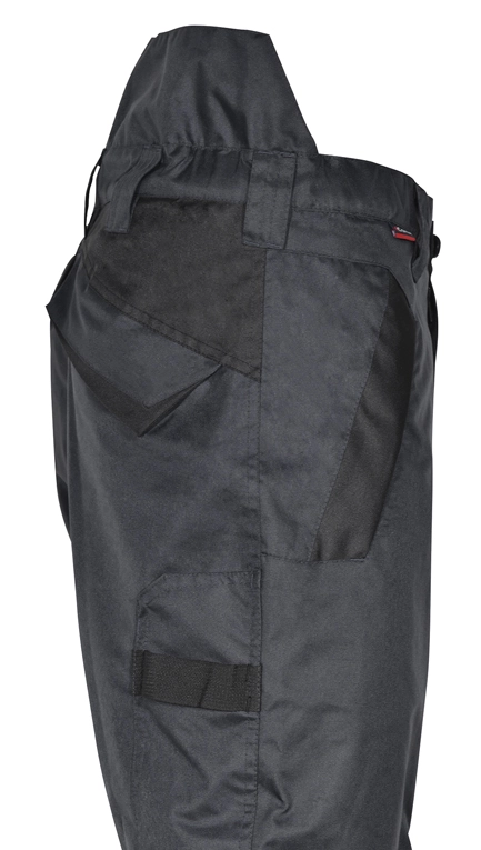 Description:2 wide front pockets, 2 back pockets with flap, hammer loop, thermo-welded seams, waterproof garment, D-Ring, elasticated waist, trouser bottom adjustable with velcro, internally coated with thermal lining, high back waist, knee and leg ergonomic design, side pocket, ruler pocket with drainage eyelet