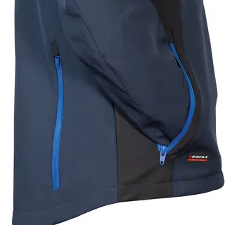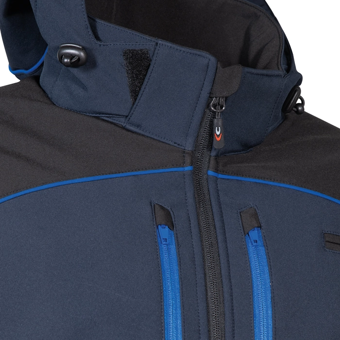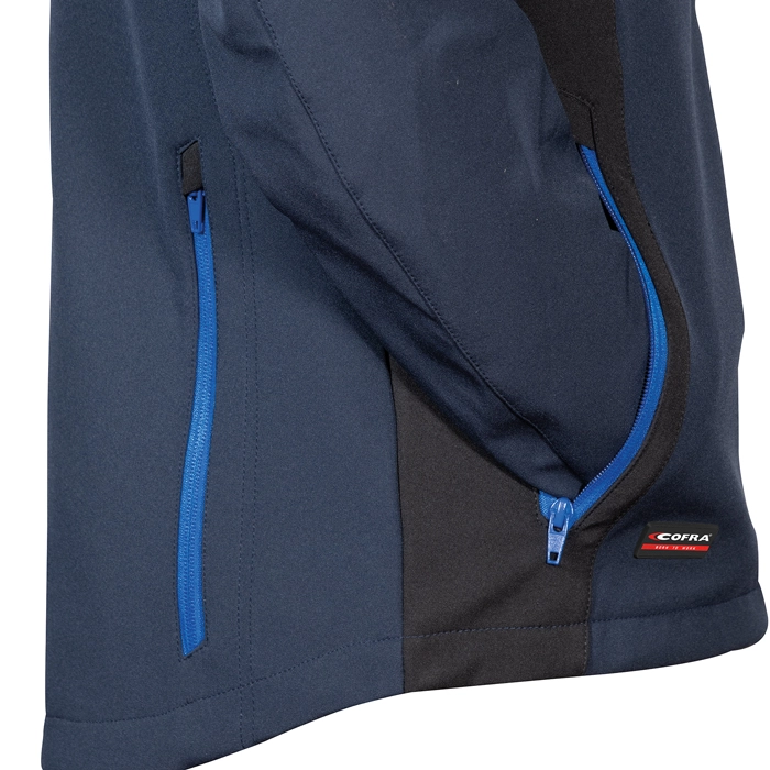 Description:2 wide breast pockets with zip closure, 2 lower pockets with zip, wide back waterproof pocket closed by zip, front opening with zip, adjustable and detachable hood, arm ergonomic design, SOFTSHELL jacket with fleece internal part, flap protecting the chin, adjustable cuffs with velcro, radio pocket on the breast, bielastic fabric with wind-protecting membrane